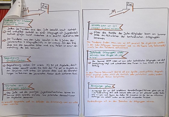 Jedes 2-er-Team aus dem Jute besucht, baut Kontakt auf und pflegt Kontakt zu einer Ortsgruppe mit Jugendarbeit. Kontakt pflegen heißt mindestens 1x im Quartal Kontakt zu haben.