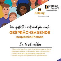 Kolpingjugend Limburg Themen Queere Jugendarbeit Gesprächsabend Kolpingjugend DV Limburg Gesprächsabend 4 Schwerpunkte Als Kolpingsfamilie könnt ihr wählen zu welchem oder zu welchen Schwerpunkten ihr