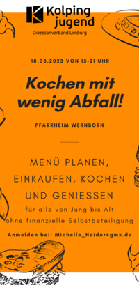 Kolpingjugend Limburg Kochen mit wenig Abfall Kolpingjugend DV Limburg 31.01.2023 Kochen mit wenig Abfall Die Kolpingsfamilie Wernborn lässt es sich als nächstes mit uns schmecken Robin Blum Am Wochen