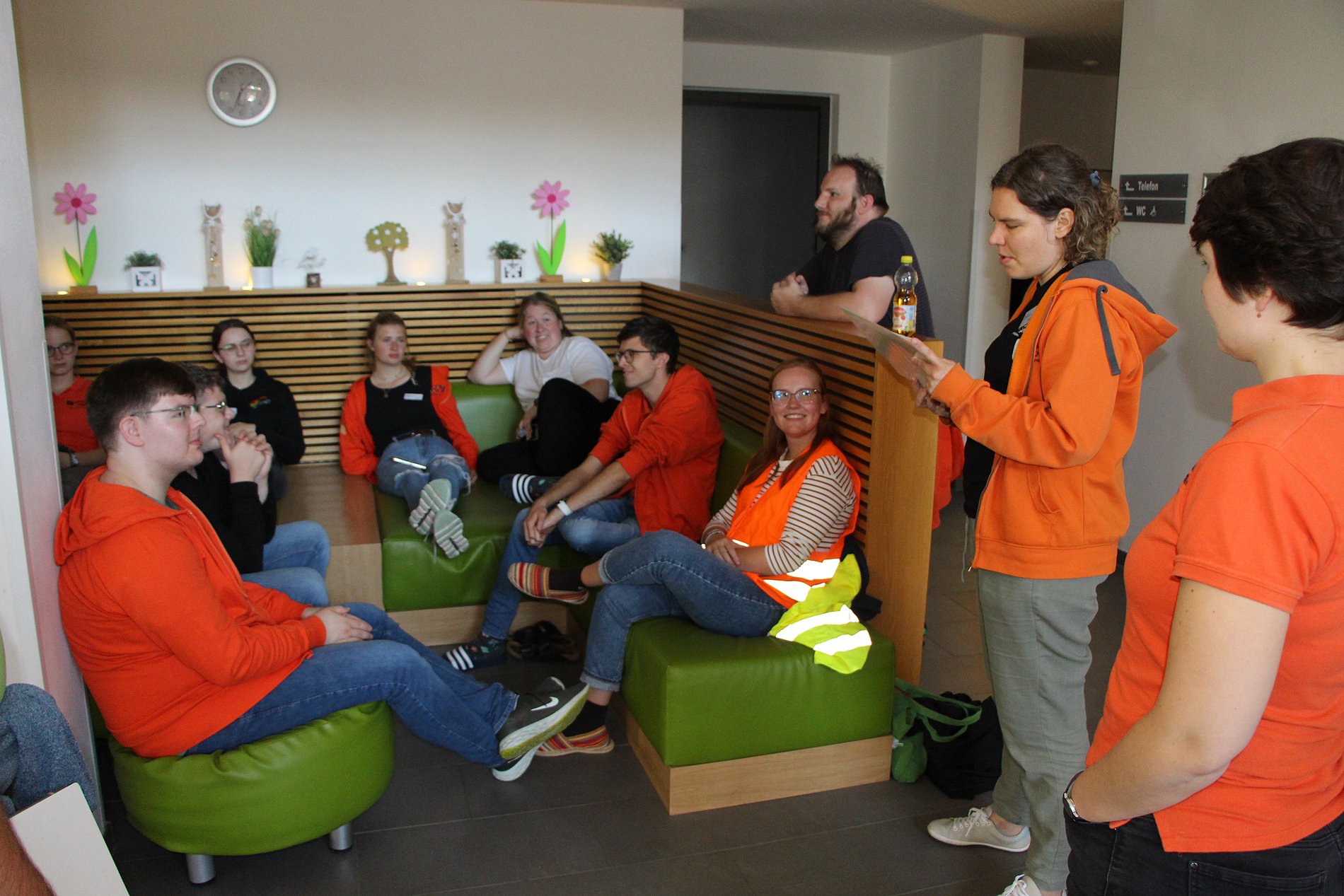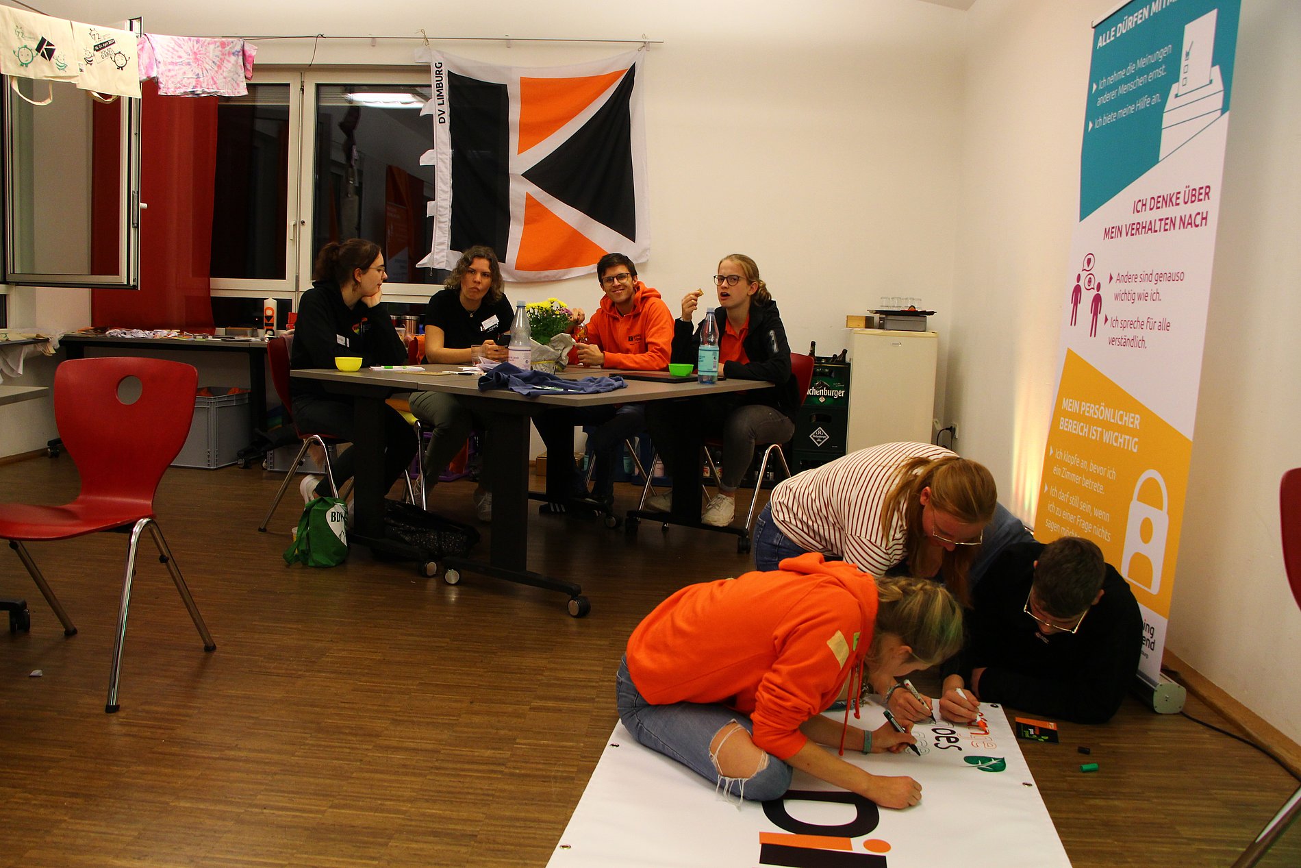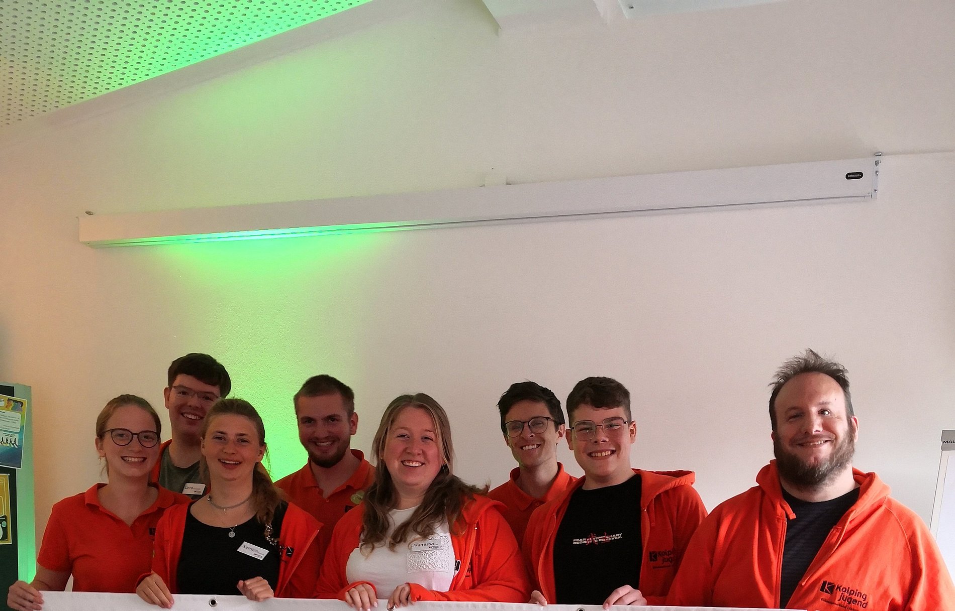 Nach mehr oder weniger Schlaf starteten wir in den Samstagvormittag mit einem Impuls zum Thema Wasser. Nach Eröffnung der Wahlliste lauschten wir gespannt den Berichten der DL (Diözesanleitung), des Jute (Jugendteam) und den Untergruppen. Ebenfalls berichtete Sebastian Sellinat aus dem Kolpingwerk. Bei den darauffolgenden Anträgen wurden Änderungen an der WGO (Wahl- und Geschäftsordnung) angenommen und beschlossen, dass die „PG BlÖff“ (Projektgruppe Blättchen und Öffentlichkeitsarbeit) ihren nicht mehr zeitgemäßen Namen in „PG SMÖff“ (Social Media und Öffentlichkeitsarbeit) ändert. In der Mittagspause verwandelte sich unser Tagungsraum dann wie von Geisterhand in einen Escape-Room zum Thema Klimakrise. In knapp einer Stunde konnten wir uns mit Informationen rund um den Klimawandel erfolgreich unseren Weg aus dem Raum suchen. Nach einer kurzen Kuchenpause folgten dann die Wahlen und Personaldebatten für das Jute und die DL. Wir dürfen Vanessa in der DL begrüßen, sowie Benedict im Jute. Gero, Kerstin und Jakob wurden wiederholt ins Jute gewählt. Vielen Dank für euer Engagement! Nach einem Gruppenfoto lauschten wir dann dem Bericht des Bistums von Florian Tausch (stellvertretender Abteilungsleiter) und dem des BDKJs von Ronja Röhr (Ehrenamtliche Diözesanvorsitzende). Auf das ausgiebige Abendessen folgte wiederum ein Impuls, diesmal zum Thema Luft. Den restlichen Abend testeten wir unser Wissen rund um das Thema Natur und Nachhaltigkeit in einem Pubquiz. Um danach unsere Energiereserven wieder aufzufüllen, gab es als Mitternachtssnack Cracker und Käse-Trauben-Spieße.