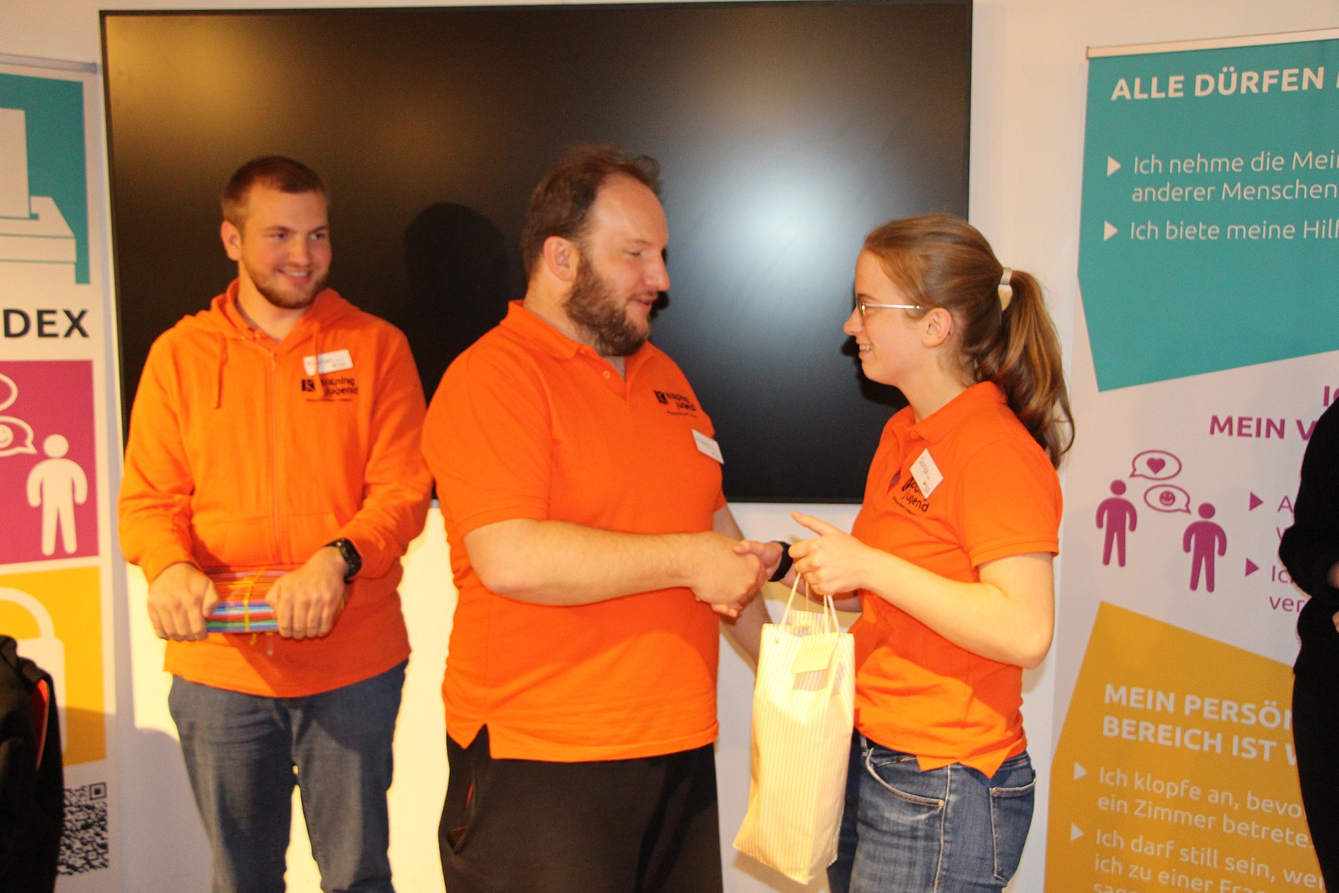 Eins der vielen Highlights des Wochenendes war die Ehrenzeichenverleihung. So konnte die DL (Diözesanleitung) nach einem Beschluss auf Bundesebene das Ehrenzeichen nun auch auf Diözesanverband-Ebene verleihen. Nach monatelanger Geheimhaltung gelang eine Überraschung der Preisträger*innen Chrissi Schuh, Robin Blum und Joachim Kohl. Mit der Preisverleihung möchten wir Danke sagen und unsere Wertschätzung für ihr jahrelanges Engagement zum Ausdruck bringen!