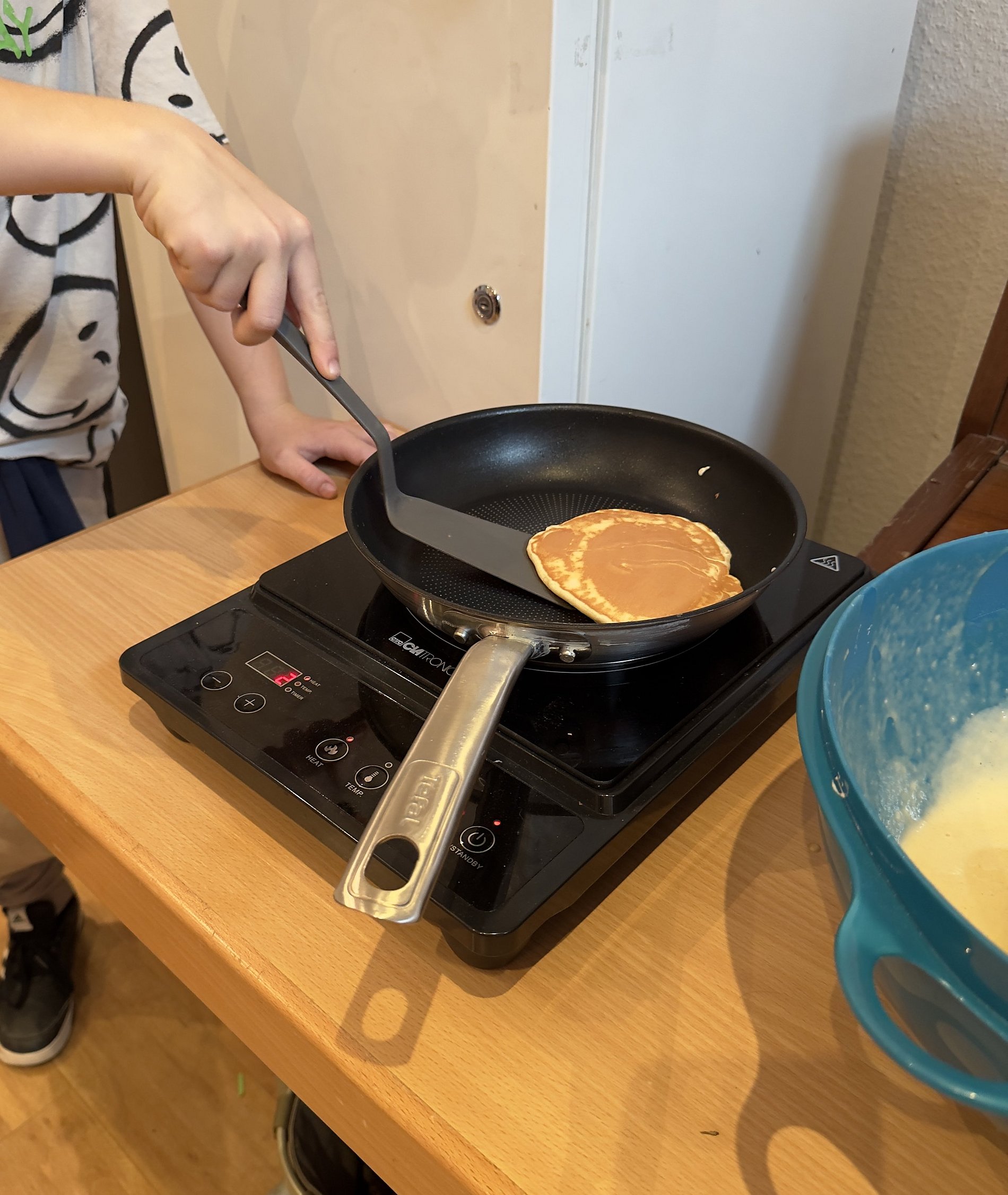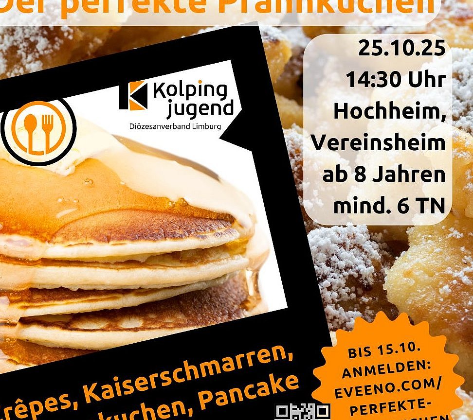 Am 25. Oktober 2025 fand im Vereinsheim in Hochheim die Aktion „Der perfekte Pfannkuchen“ der Kolpingjugend im Bistum Limburg statt. Viele motivierte Kinder ab acht Jahren waren mit dabei und haben gemeinsam Crêpes, Pancakes, Kaiserschmarrn und Pfannkuchen ausprobiert. Zu Beginn wurden die Teilnehmenden in Gruppen aufgeteilt. An verschiedenen Stationen konnten sie Teig anrühren, backen und verzieren. Durch das Rotationssystem kam jedes Kind einmal an jede Station und konnte überall selbst mit anpacken. Am Ende wurde natürlich auch probiert. Die Ergebnisse waren richtig lecker und jede Gruppe hatte ihre ganz eigene Variante. Besonders spannend war, dass jede und jeder einen anderen Favoriten hatte. Auch bei den Toppings gingen die Meinungen auseinander: Ob Nuss-Nougat-Creme, Apfelmus oder Maronencreme, alles war dabei. Die Kinder hatten sichtlich Spaß beim gemeinsamen Zubereiten und Naschen. Es war ein rundum gelungener Nachmittag voller Freude, Teamwork und vielen köstlichen Momenten.