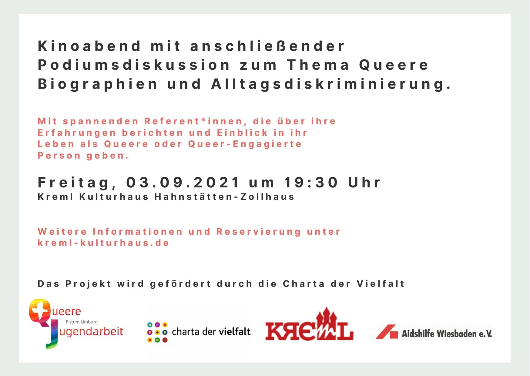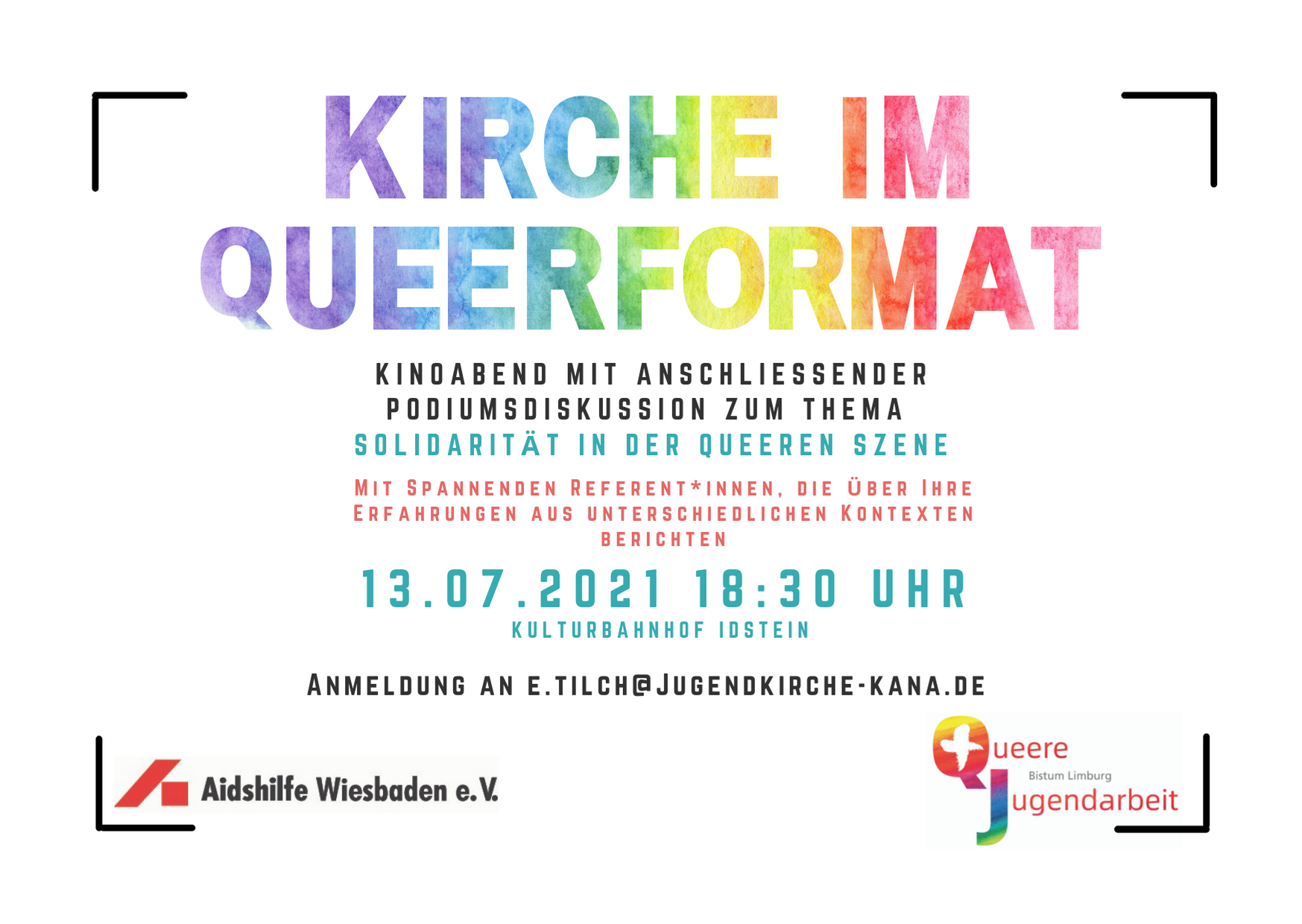 Das Format "Film mit anschließender Podiumsdiskussion" wurde erstmals in der Jugendkirche KANA erprobt. 2021 fanden verschiedene Veranstaltungen diesen Formats statt.